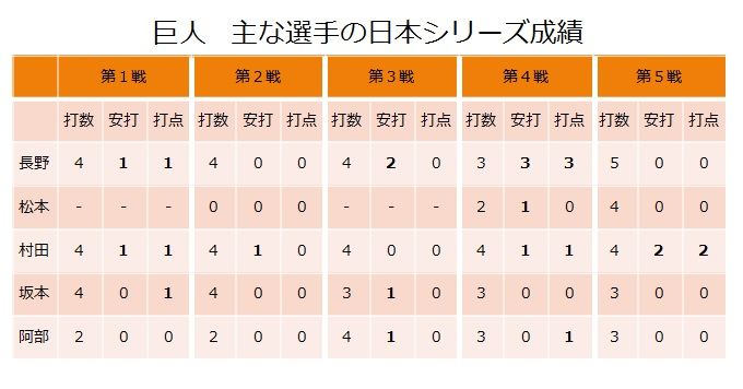 画像:巨人 主な選手の成績