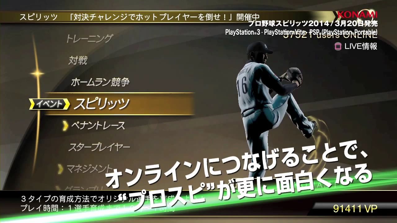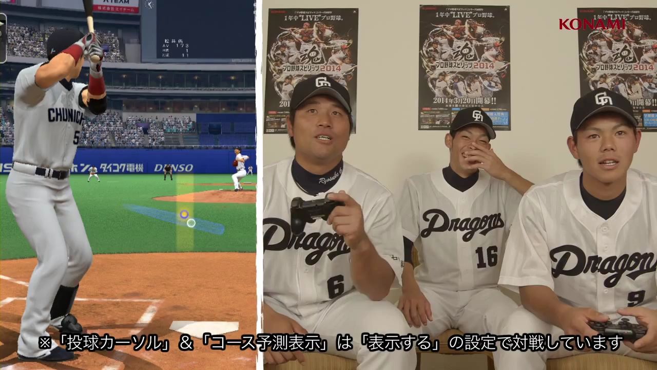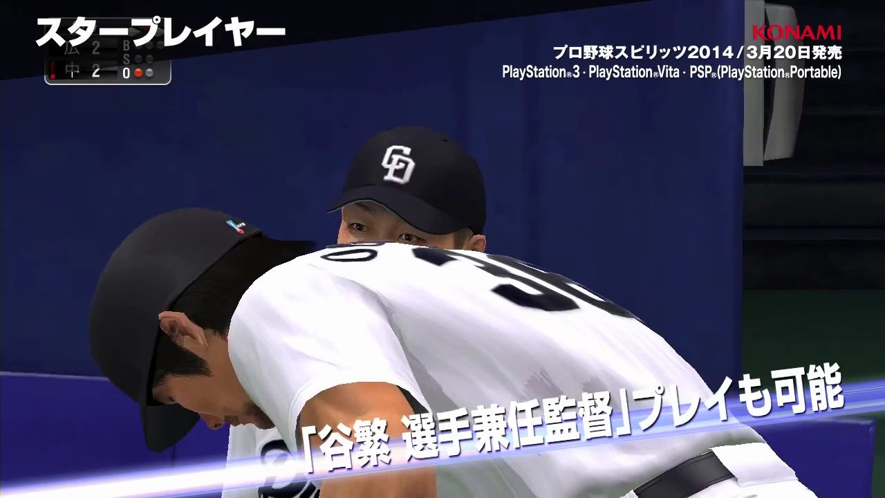 株式会社コナミデジタルエンタテインメントは、野球ゲームの定番「プロ野球スピリッツ」(以下、『プロスピ』)シリーズの最新作『プロ野球スピリッツ 2014』(以下、『プロスピ2014』)のPVと中日ドラゴンズ・平田選手ら3選手によるプレイ動画を公式サイトにて本日公開しました。