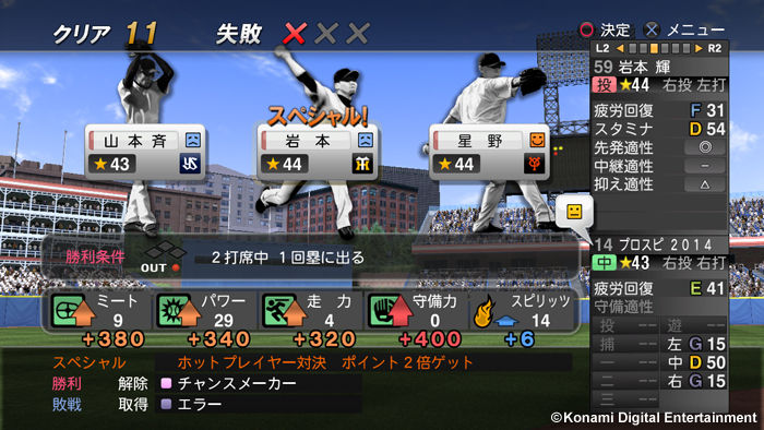 株式会社コナミデジタルエンタテインメントは、野球ゲームの定番「プロ野球スピリッツ」(以下、『プロスピ』)シリーズの最新作『プロ野球スピリッツ 2014』(以下、『プロスピ2014』)の公式サイトで「LIVEプロスピ」の情報を本日公開しました。