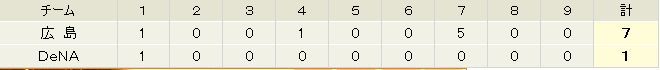 ◇本塁打 丸4号(ソロ100m=井納) 堂林4号(満塁110m=高崎)