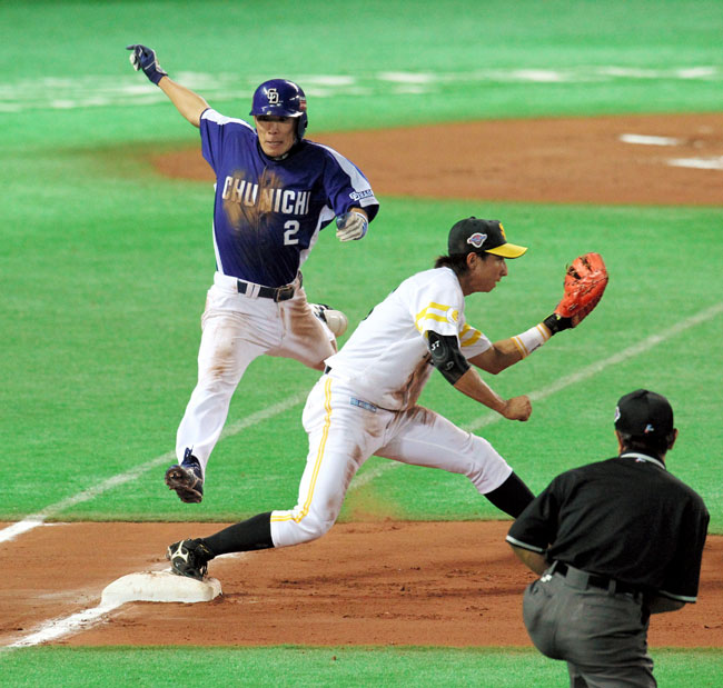 中田が怠慢走塁で、なんでもない外野フライなのに二塁からすこし飛び出してて戻るのにちんたら歩いてたら角中に刺されたのには笑ったわwww