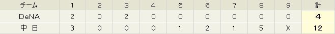 中日が逆転勝ちで引き分けを挟んで4連勝。貯金を1とした。