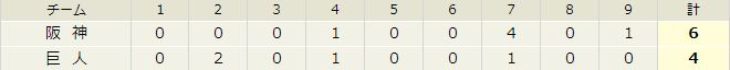 ◇本塁打 ロペス16号(ソロ125m=岩田) アンダーソン9号(ソロ110m=岩田) 関本1号(満塁110m=沢村)