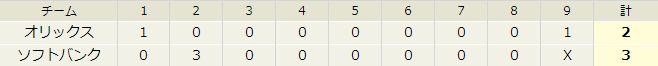 オリックスは先発のディクソンが1回2/3、4安打3失点で試合をつくれずにマウンドを降板。打線は9回に1点差まで詰め寄ったが一歩およばず、手痛い3連敗を喫した。
