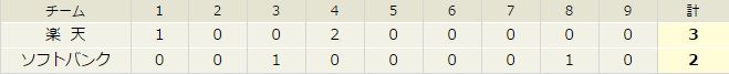 楽天は少ないチャンスをものにして3安打3得点でソフトバンクに勝利した。
