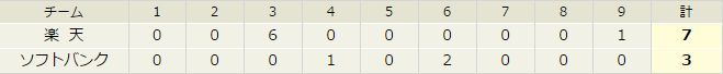 楽天が3回に打者10人の猛攻で6点を挙げるなど快勝。ソフトバンク戦の連勝を4に伸ばした。