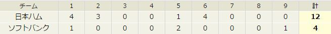 ◇本塁打 陽1号(ソロ110m=摂津) 小谷野1号(3ラン120m=摂津) 陽2号(3ラン125m=摂津) 内川2号(2ラン125m=吉川) 中田3号(3ラン130m=東浜)
