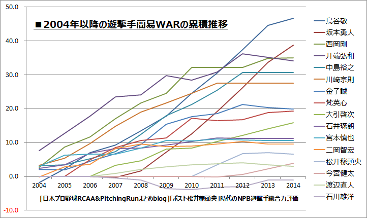 中島鳥谷坂本(あと西岡)はまだキャリア半ばなのに相当高い順位にランクインしてる