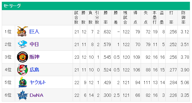 交流戦前までそれほど崩れるということはないとおもうで?勝ち星を重ねる可能性のほうが期待できる。ただ交流戦に関してはやってみなきゃわからんわな。