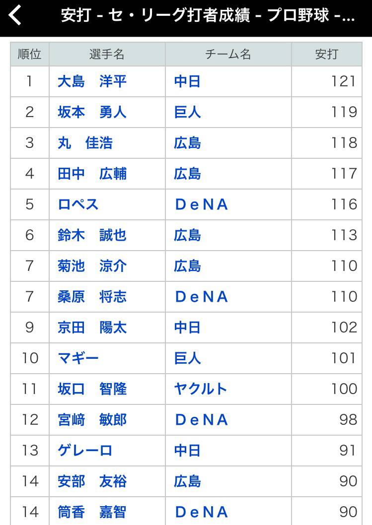 巨人中日というハンデ背負って上位に居る大島坂本すごい