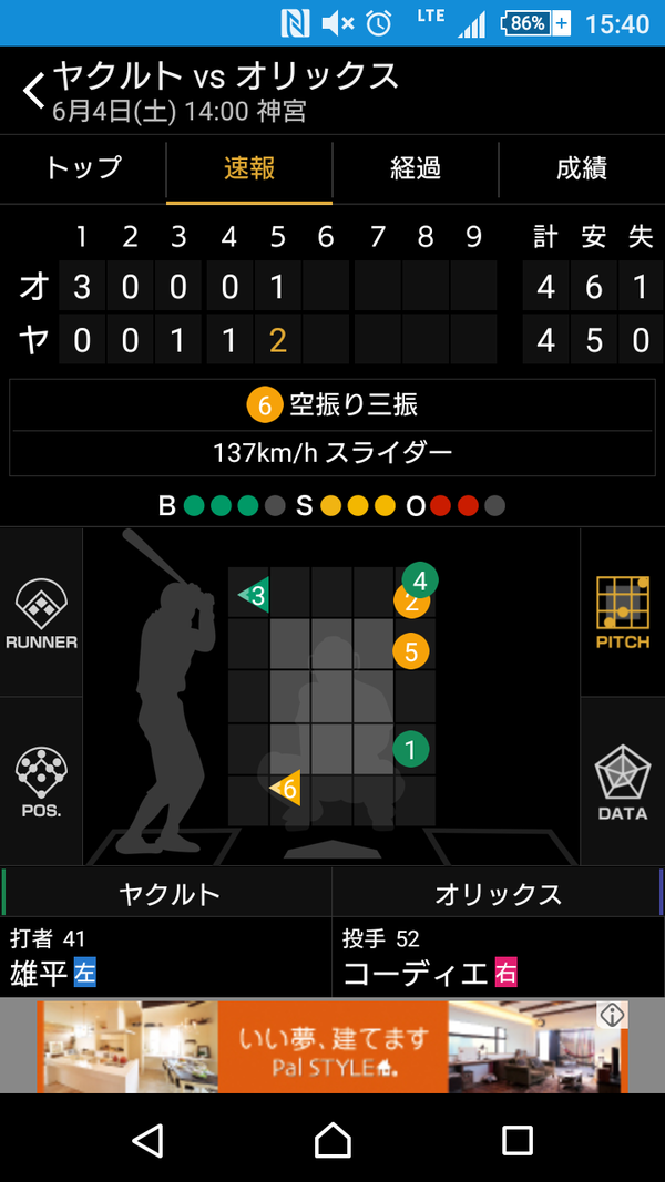 コーディエの打てる気がしない豪速球を雄平が一生懸命フルスイング、結果三振したけどほんまによかった感動した
